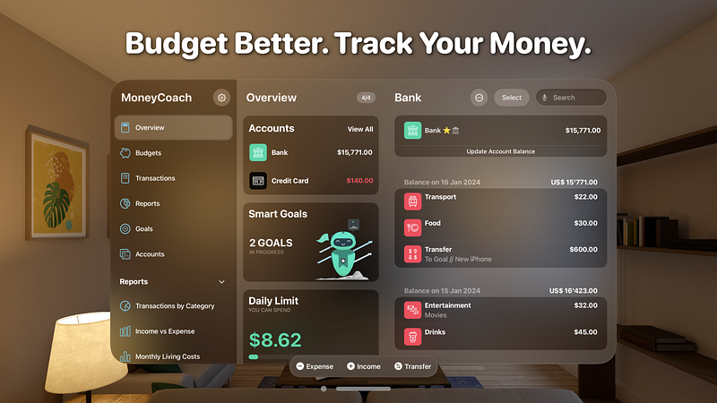 MyExpenses is a versatile application for visionOS that provides a seamless solution for tracking and managing both expenses and income. Crafted with ...