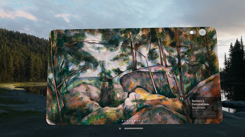 1.4View an immersive, high definition, curated art selection in Apple Vision Pro's spatial vision. Place, zoom, and click to learn more about the artist and artwork. The high quality and curated selection of over 50+ fine artworks provide an interactive and relaxing experience, surpassing the experience of a museum, all within the comfort of your own home. Enable random shuffle mode to view new art, and hit the download button to save to your Photos app for your own purposes.