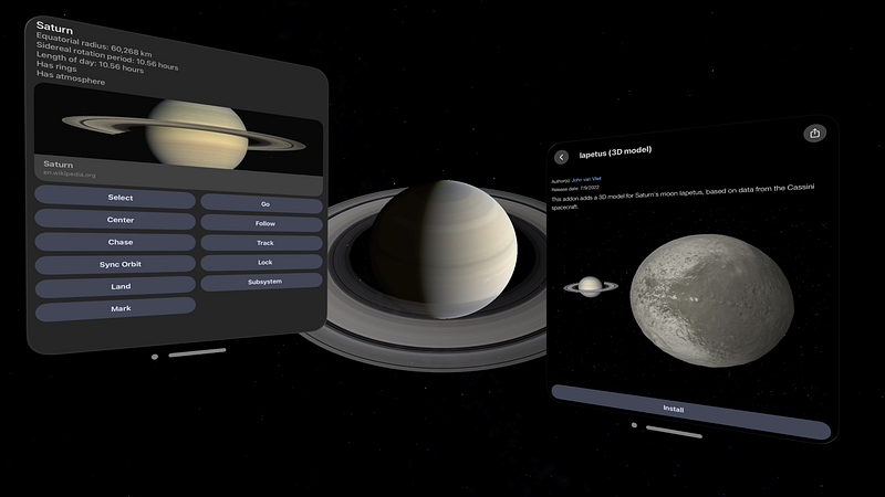 1.6.9Celestia — real-time 3D visualization of space 3D Space Simulator | Celestia lets you explore our universe in three dimensions. Celestia simulates many different types of celestial objects. From planets and moons to star clusters and galaxies, you can visit every object in the expandable database and view it from any point in space and time. The position and movement of solar system objects is calculated accurately in real time at any rate desired. Interactive Planetarium | Celestia serves as a planetarium – for an observer on any celestial object. You can easily navigate to any world and land on its surface. When used as a planetarium, Celestia shows accurate positions of solar system objects in the sky. You can switch labels and other supporting features on and off with hotkeys, or zoom in and out on an object of interest, for example Jupiter’s system of moons. Expandable Content | Customize Celestia according to your needs. Celestia’s catalogues can be easily expanded. There are many different add-ons available containing new objects like comets or stars, high-resolution textures of Earth and other well mapped solar system bodies, as well as 3D models for asteroids and spacecraft on precise trajectories. Even fictional objects from well-known sci-fi franchises can be found.