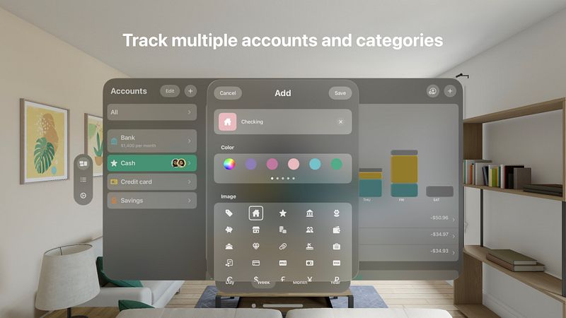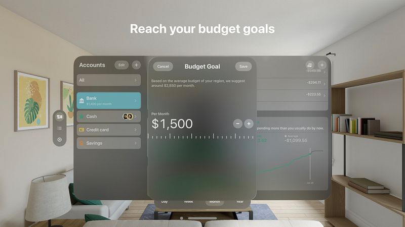 5.2.3Save money and reach your financial goals by adding and analyzing your transactions. Fin for Apple Vision Pro builds on the capabilities of spatial computing with 3D charts, ornaments, and hover effects