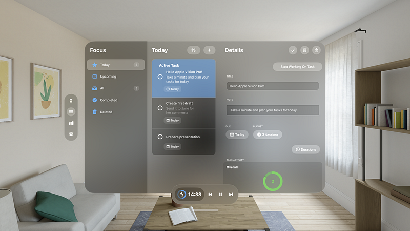 Focus lets you break down your work time into smaller chunks called Focus Sessions. Working in sessions helps you to stay focused and get some meaningful work done, tackling one task at a time. Focus also encourages you to take regular breaks between your sessions which is particularly helpful to maintain your energy and keep your focus throughout the day. “[…] a tool that can genuinely make people more productive" – MacStories.net “[…] a must-have for anyone who finds themselves easily getting distracted or forgetting to take occasional breaks." – iDownloadBlog.com ====================== FEATURES ====================== FOCUS SESSIONS Focus Sessions are a highly efficient way to work. Focus for 25 minutes, then take a short break to relax your mind. After four sessions, take a longer, 15 to 20 minute break. This method maximizes energy, stimulates creativity, and promotes a sense of achievement. TASK MANAGER Focus includes a lightweight task manager that lets you organize the things you want to work on intuitively. By working on one task at a time, you reduce distractions and can put all your attention towards completing your goals. That way you’ll be perfectly organized on your path to success. IN-DEPTH STATISTICS Check in with your progress! Focus keeps track of your work and offers in-depth and motivating statistics. See your daily, weekly and monthly activity so you don’t lose sight of the big picture. FOCUS EVERYWHERE Sync Focus across your iPhone, iPad, Apple Watch, Mac, and Apple Vision Pro with iCloud for a seamless experience. Use Shortcuts to build powerful productivity automations or view the most important information with Widgets. Focus is available where and when you need it! FOCUS & APPLE WATCH: A PERFECT FIT Using Focus on your wrist is a natural fit. The independent Apple Watch app is made for for easy and lightweight interactions that lets you control sessions and track your progress throughout the day. With the Focus complication, you can customize your watch face to see your current progress at a glance. BEAUTIFUL INTERFACE The name says it all: Focus draws your attention to the most important things. It’s designed to be unobtrusive, accessible and easy-to-use. You’ll intuitively master its collection of features in no time. ===================================== SUBSCRIPTION PRICING - ALL PLATFORMS, ONE PRICE ===================================== Focus requires a subscription that unlocks all features on iPhone, iPad, Apple Watch and Mac!
