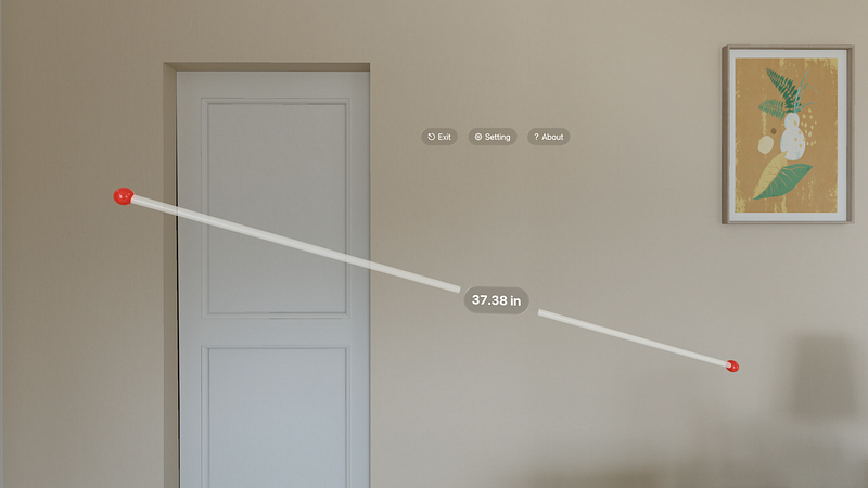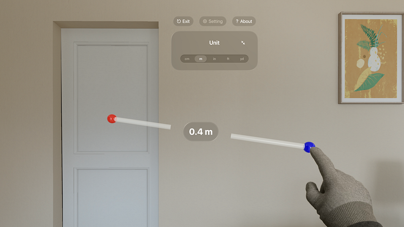 1.0.1Measure the distance between both hands intuitively. App shows the measurement of the distance between the tips of the index fingers, from the left hand to the right hand. Unit option