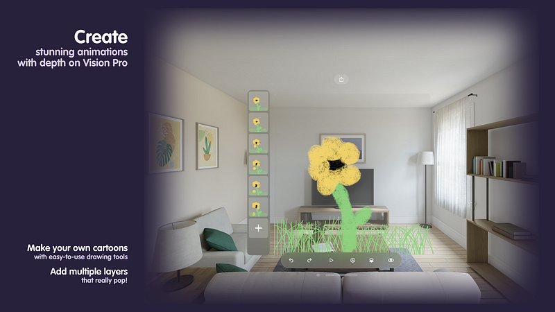 23.4With Kineo, you can create stunning hand-drawn animations on Vision Pro. Kineo’s flipbook-style drawing tools make it easy for you to create and share your animations with the world. On Vision Pro, you can even arrange your drawings in front and behind each other in 3D space. Kineo shows you faint reminders of the last few pages, making it easy to draw the next. When you’re done, you can share your creation on your favorite social networks; you can even save them as Spatial Video!