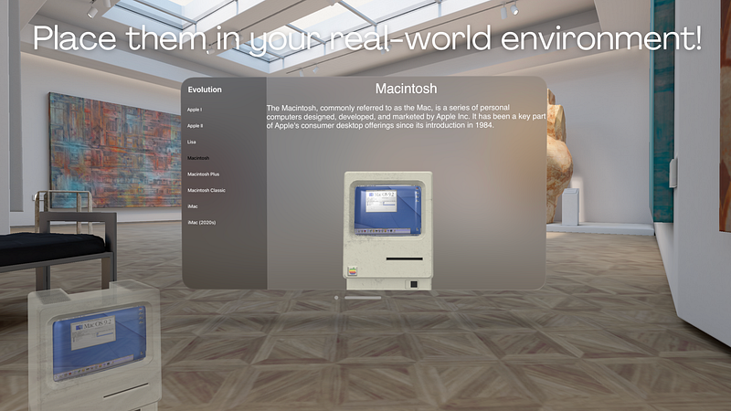 1.0Embark on a journey through the evolution of iconic computers with Lisa. Discover a curated collection of historical computers that have made milestones in the tech industry, from the pioneering Apple I and Apple II to the innovative Macintosh. Key Features: - Explore a curated collection of iconic computers that shaped the tech industry. - Immerse yourself in detailed 3D models showcasing the design and features of each computer. - Learn about the history and significance of each model through informative descriptions. - Place the computers in your real-world environment. Lisa offers a unique journey through the history of computers, allowing you to witness firsthand how these revolutionary machines have evolved over time. Download now and start an enlightening exploration of technology history.