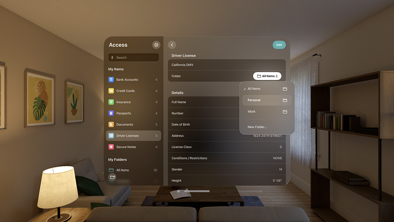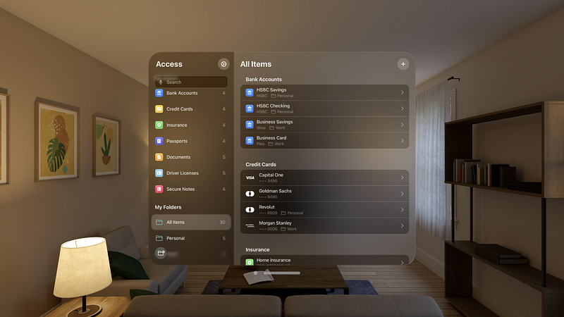 1.0.2Access provides secure storage for your personal information. It is designed as a native app and pairs great with Passwords on visionOS. For privacy and security, Access is free from ads, logging, or tracking of any kind. Your information is kept up-to-date across your devices through iCloud. iCloud encryption ensures that your data is inaccessible to the developer, Apple, or any third party. For an added layer of security, Access supports authentication with Optic ID. No sign-up or any separate account is required to use the app. Privacy policy: