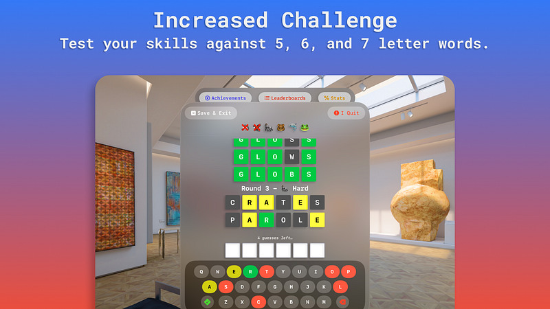 Measure your guessing prowess against friends and global competitors across multiple modes. Climb the leaderboards and claim your spot as the ultimate wordsmith! NO ADS, PRIVATE BY DESIGN