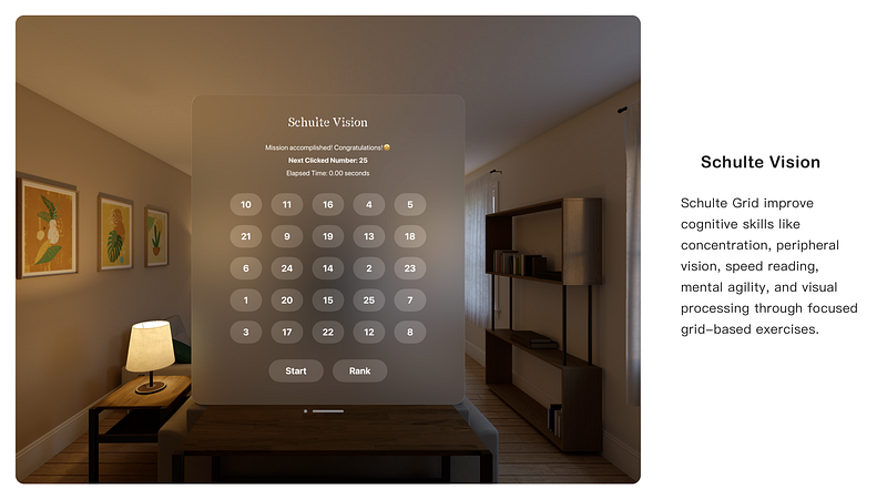 1.1Schulte Grid improve cognitive skills like concentration, peripheral vision, speed reading, mental agility, and visual processing through focused grid-based exercises. Experience the ultimate in gaming immersion with our latest release! Seamlessly integrate eye-tracking technology into your Schulte grid gameplay for an unprecedented level of fluidity and precision. Connect with friends and players worldwide through Apple Game Center and engage in thrilling competitions. Elevate your gaming experience and test your skills against the best. Download now and join the global gaming community!