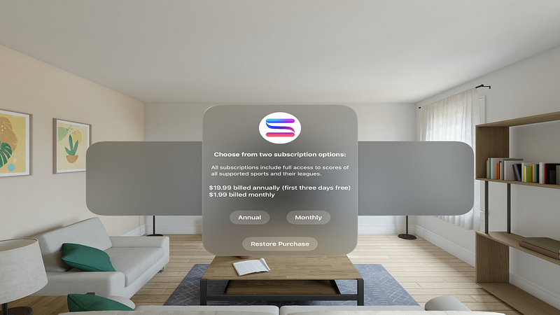 1.1Introducing SlideScores for Apple Vision Pro โ Your Ultimate Game Day Companion SlideScores revolutionizes how sports fans stay connected with the pulse of every game. Designed exclusively for the Apple Vision Pro, SlideScores brings you a seamless and immersive experience to keep track of live sports scores without taking your eyes off the game you love. Effortless Integration, Unmatched Convenience Place SlideScores above your television and dive into a world where you never miss a beat. Our app provides a scrolling list of live sports scores, ensuring you're always in the loop with other games that matter to you. With the integration of team logos, identifying your favorite teams and their current standings is just a glance away. Key Features: Live Scores: Continuous updates on the latest sports scores from around the league.