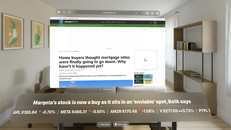 Stock and financial headlines banner to soup up your Vision Pro workspace