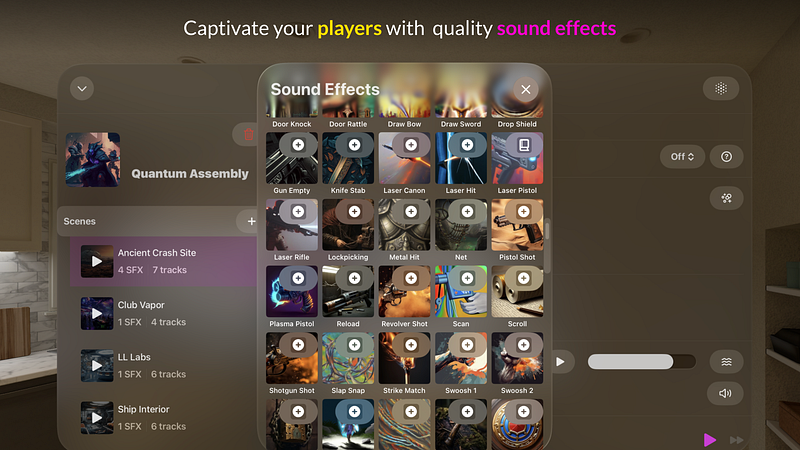 2.4.3Music, Sound Effects and Ambience. Transform your tabletop RPG sessions into an immersive adventure with Summoning Stone, the ultimate companion app for dungeon masters and players. With an extensive library of music, sound effects, and ambient sounds designed to elevate your game, Summoning Stone delivers an unparalleled auditory experience. Crafting an epic campaign has never been easier - Summoning Stone lets you create and manage campaigns effortlessly. The intuitive interface and easy-to-use tools make it accessible for RPG enthusiasts of all experience levels. Organize your sounds, music, and ambience into scenes for quick access, and easily switch between different scenes to enhance your game's atmosphere. Go from a cozy tavern interior to a fight in the snow outside. Summoning Stone offers a range of key features that set it apart from other RPG apps. Enjoy Apple Music integration to import your existing playlists, while organized scenes by campaign let you keep your fantasy and sci-fi games separate. With layered ambience, you can combine sounds to create unique experiences like creaking wood, wind, and waves for a sailing adventure. Customize your sound board to trigger effects at any moment, and use screen mirroring to project your artwork and maps on a big screen for all players to see. Take your RPG sessions to the next level with Summoning Stone - the ultimate tabletop RPG companion app. Key Features: - Apple Music integration and import the playlists you've already created! (Spotify coming soon!)