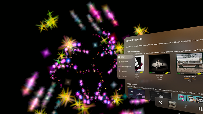 12.1.0tappr.tv is a new kind of digital dance experience created by a global community of music lovers on iOS and iPadOS. Using your fingers, you can dance to your favorite music using any of 100 wands and 10 effects, which respond with kinetic and vibrant particles of light. Choreograph your dances with multiple layers, and publish dances to the tappr.tv community. Now, tappr.tv comes to visionOS, with over 5,000 dances for you to enjoy in glorious 3D! And dance along, with Wands! While watching dances, you can pick a wand and wave your hands in the air to create your own particle streams.