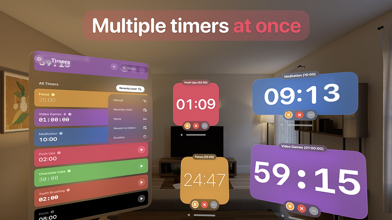 2024.5Timersive is the ultimate time management companion on Apple Vision Pro. Start, monitor and control multiple timers simultaneously in your virtual space and always have them at a glance on your Apple Vision Pro. Whether you're cooking, exercising, meditating, working, studying, or simply taking a well-deserved break, this app empowers you to keep track of your time commitments with ease and precision. A must have app to stay organised and productive with your Apple Vision Pro! Features include: