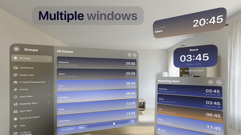 • Groups - Organize clocks into groups such as friends, teams, projects or international events