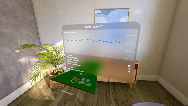 1.2.0Introducing Vision Blackjack – Your Ultimate Blackjack Casino Experience on Apple Vision Pro! Step into the future of casino gaming with Vision Blackjack, the cutting-edge spacial computing blackjack game designed exclusively for Apple Vision Pro. Immerse yourself in the next-generation spatial computing platform and elevate your blackjack skills like never before. Key Features: 1. Customizable Rules: Tailor the game to your preferences by customizing rules such as Stand on Soft 17, Double After Split, Surrender, Re-splitting Aces, and choosing between 3:2 or 6:5 Blackjack Payout. Vision Blackjack ensures that you have control over every aspect of your gaming experience.